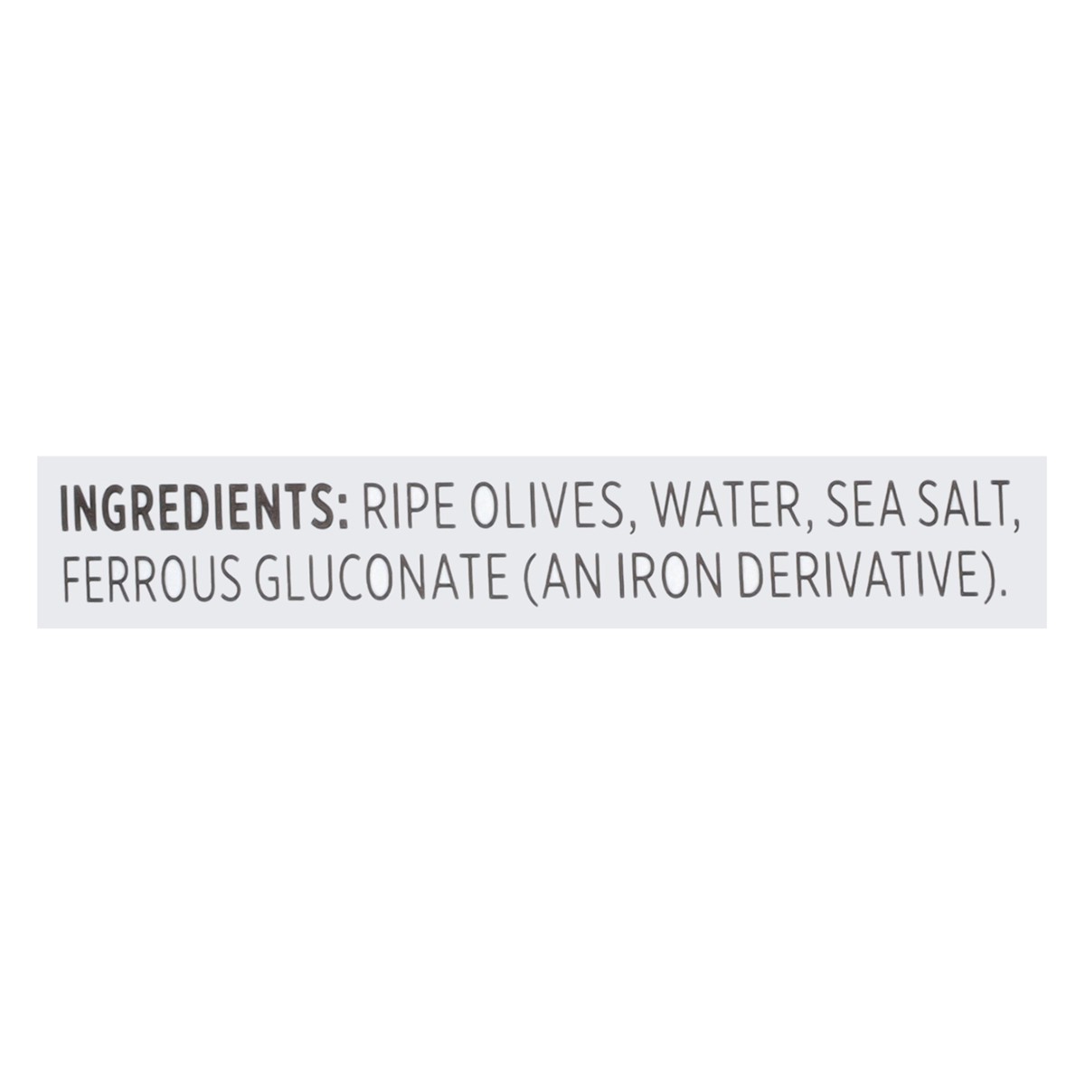Ripe Olives, Water, Sea Salt, Ferrous Gluconate (an Iron Derivative).