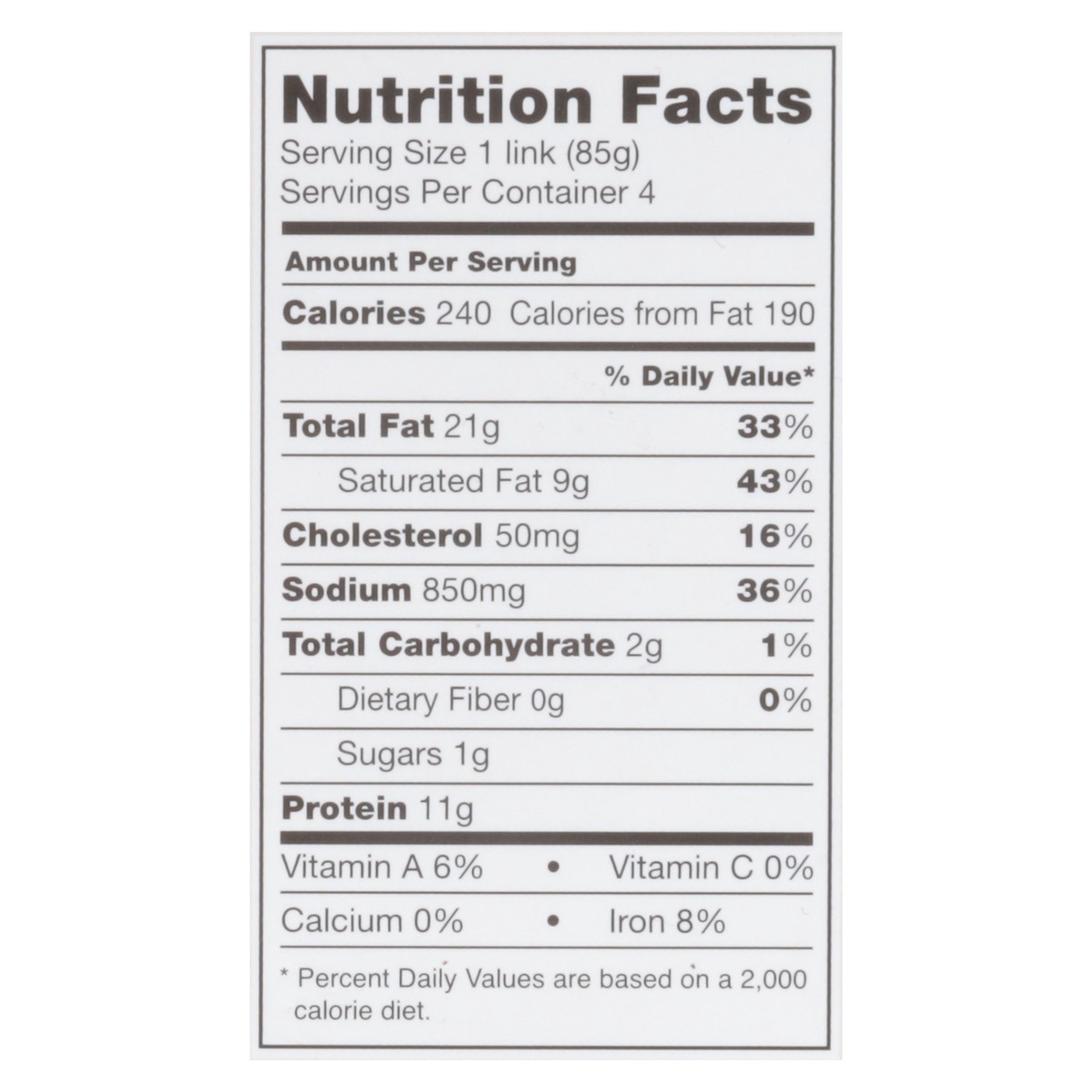 Beef, Water. Contains 2% or Less of Salt, Dextrose, Paprika, Spices, Sodium Phosphate, Garlic Powder, Sodium Erythorbate, Extractives of Paprika, Natural Flavorings, Sodium Nitrite, in Natural Pork Ca…
