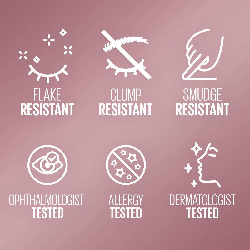 Features: Smudgeproof, Washable, Non-Flaking, Built-In Brush, Ophthalmologist Tested
