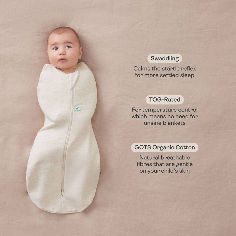 ergoPouch 1.0 TOG Organic Cocoon Swaddle Sack - Oatmeal Marle 0-3m: Sleeveless, Front Full Length Zipper, Jersey, Crew Neckline