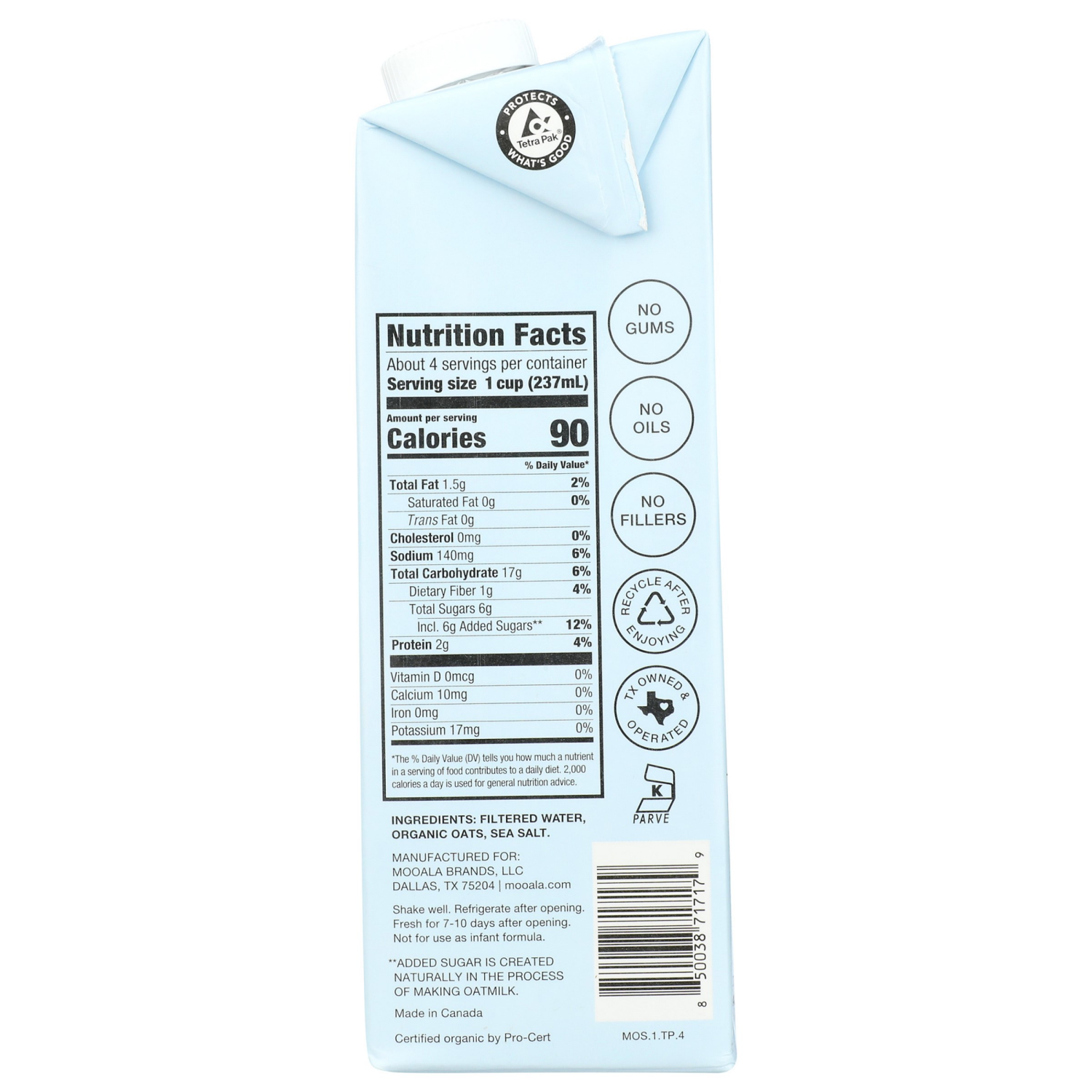 Filtered Water, Organic Oats, Sea Salt.