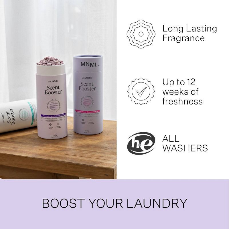 The MNML Laundry Scent Booster enhances every wash with a long-lasting fragrance that lingers for up to 12 weeks. Infused with the same calming Chamomile Calm fragrance blend used in MNML's laundry ca…