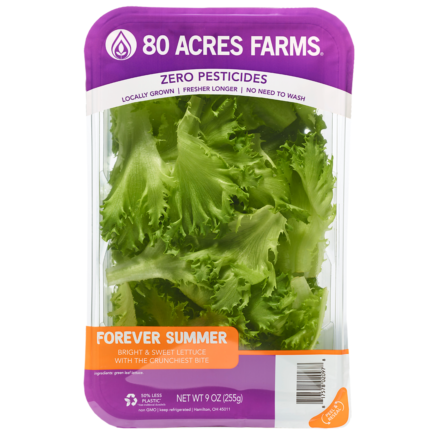 80 Acres Farms FOREVER SUMMER 9 oz, fresh local crisp leaf lettuce salad