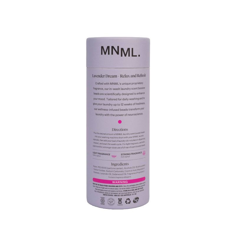 The MNML Laundry Scent Booster enhances every wash with a long-lasting fragrance that lingers for up to 12 weeks. Infused with the same calming Lavender Dream fragrance blend used in MNML's laundry ca…