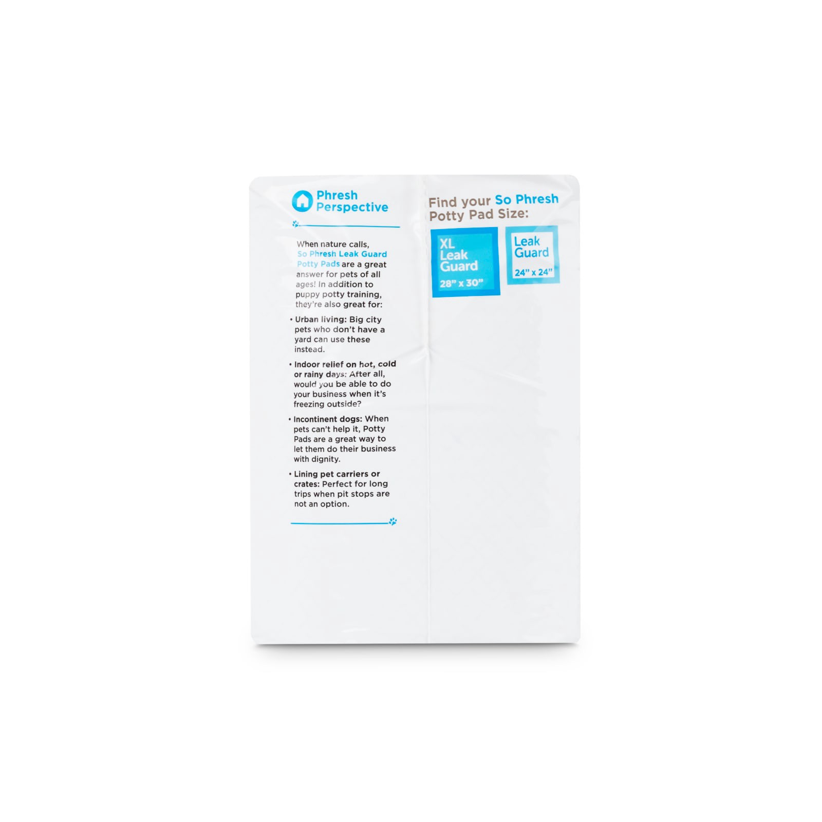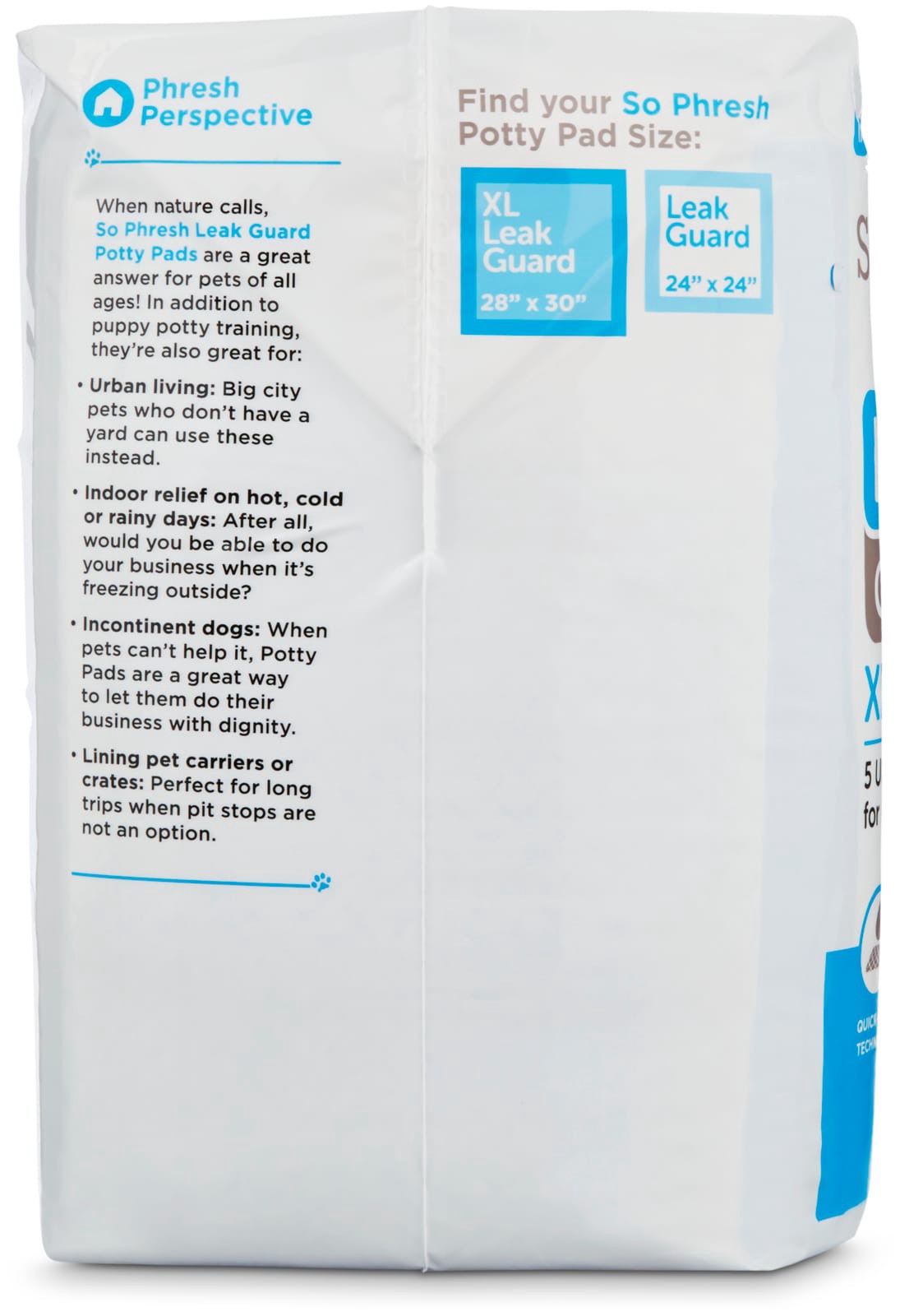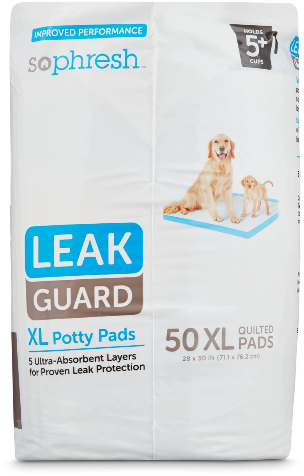 X-Large Leak Guard Dog Pads by So Phresh. Five ultra-absorbent layers soak hold up to five cups of liquid to help protect your floors. Pads feature attractant making for great dog training pads for pu…