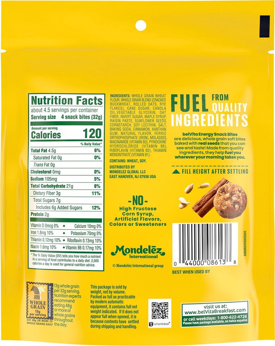 Maple, Cinnamon and Sunflower Seed belVita Energy Snack Bites are delicious snacks to help fuel your busy morning. Made with real seeds, these soft, tasty snack bites have a delightful flavor combinat…