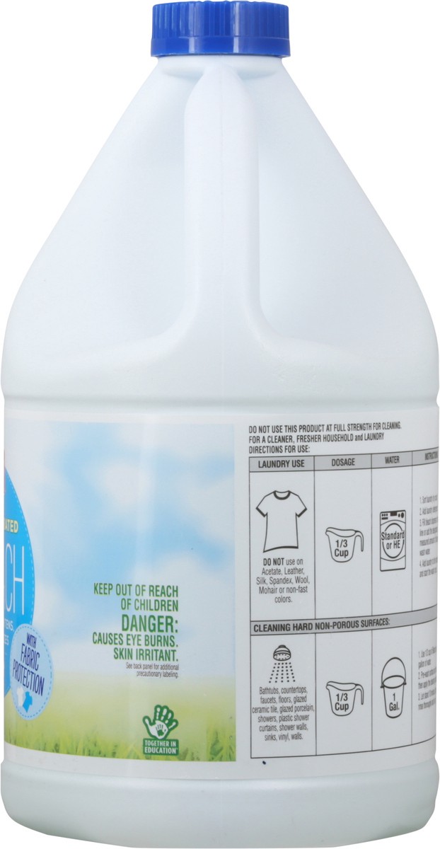 Whites stay brighter longer (When compared to bleach that only contains sodium hypochlorite and water). Cleans. Whitens. Deodorizes. For standard & HE machines. Together in Education.