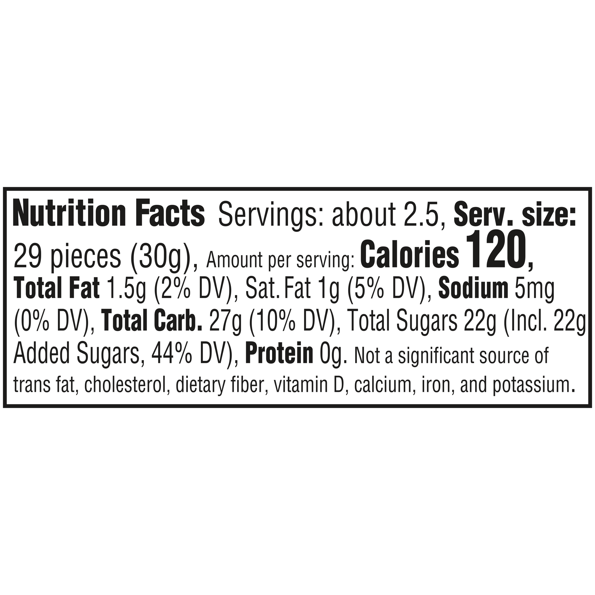 SUGAR, CORN SYRUP, HYDROGENATED PALM KERNEL OIL; LESS THAN 2% OF: CITRIC ACID, TAPIOCA DEXTRIN, MODIFIED CORNSTARCH, NATURAL AND ARTIFICIAL FLAVORS, COLORS (INCLUDES RED 40 LAKE, YELLOW 5 LAKE, BLUE 2…