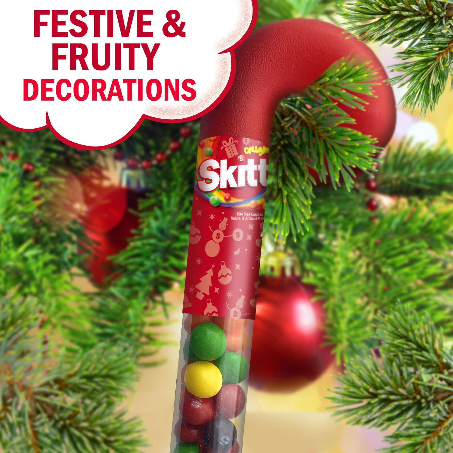 SKITTLES Original Chewy Christmas Candy Cane, 2.6 oz. Tube