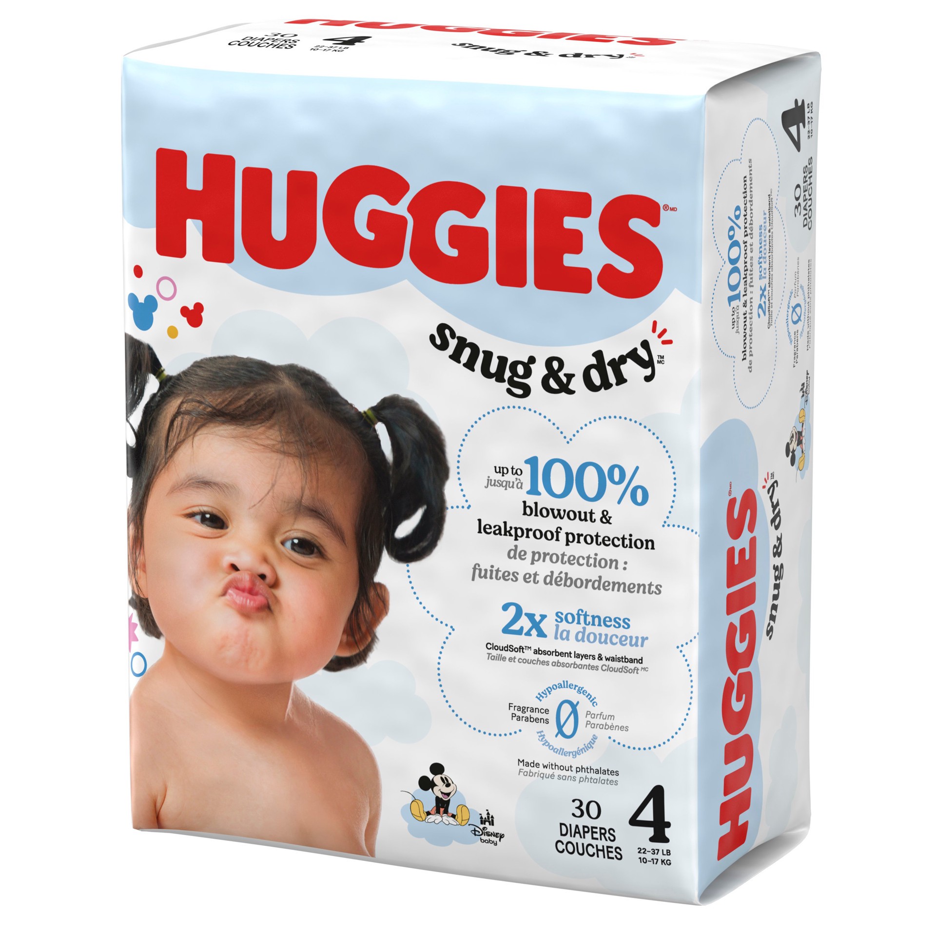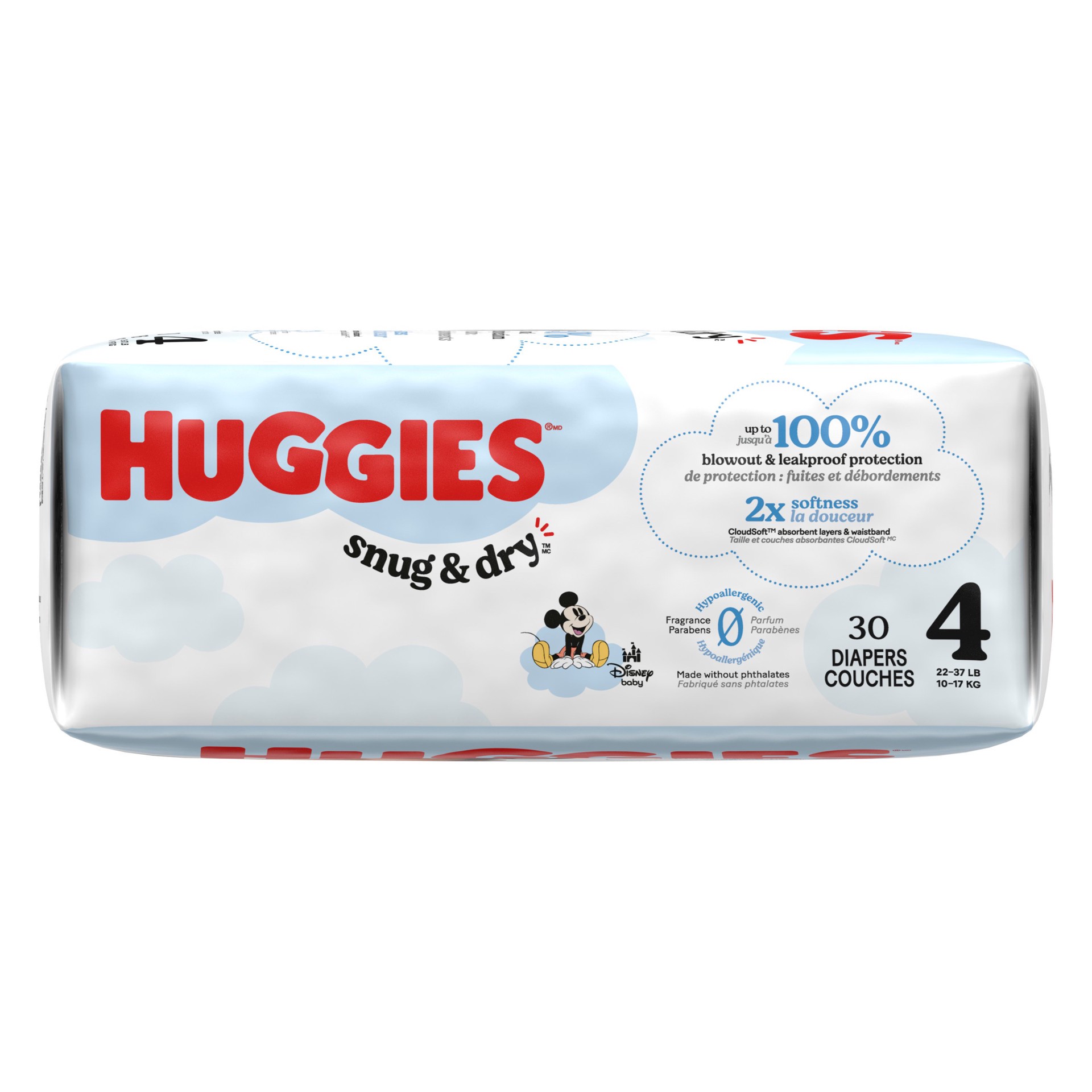 Huggies Snug & Dry Baby Diapers, Size 4 (22-37 lbs), 30 Ct