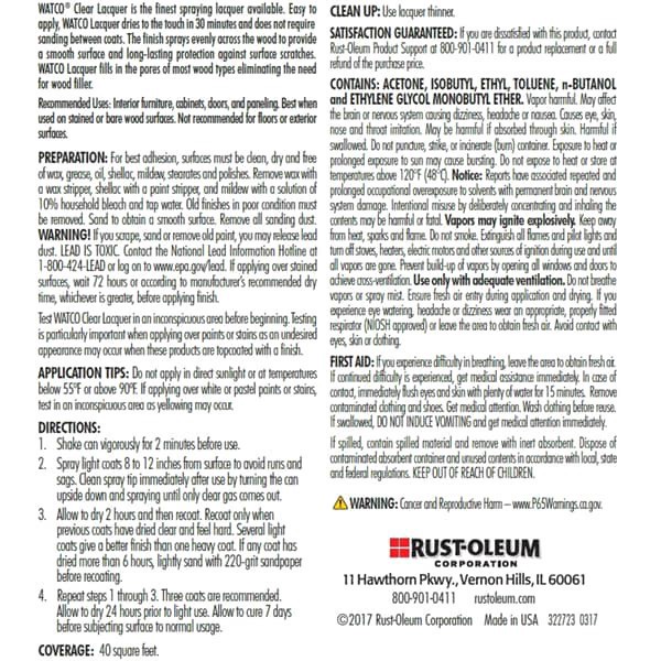 Watco Crystal Clear Lacquer Wood Finish Spray quickly adds a durable final layer of protection to wood projects such as furniture, cabinets, doors, trim and more. Fast-drying formula sprays on easily …