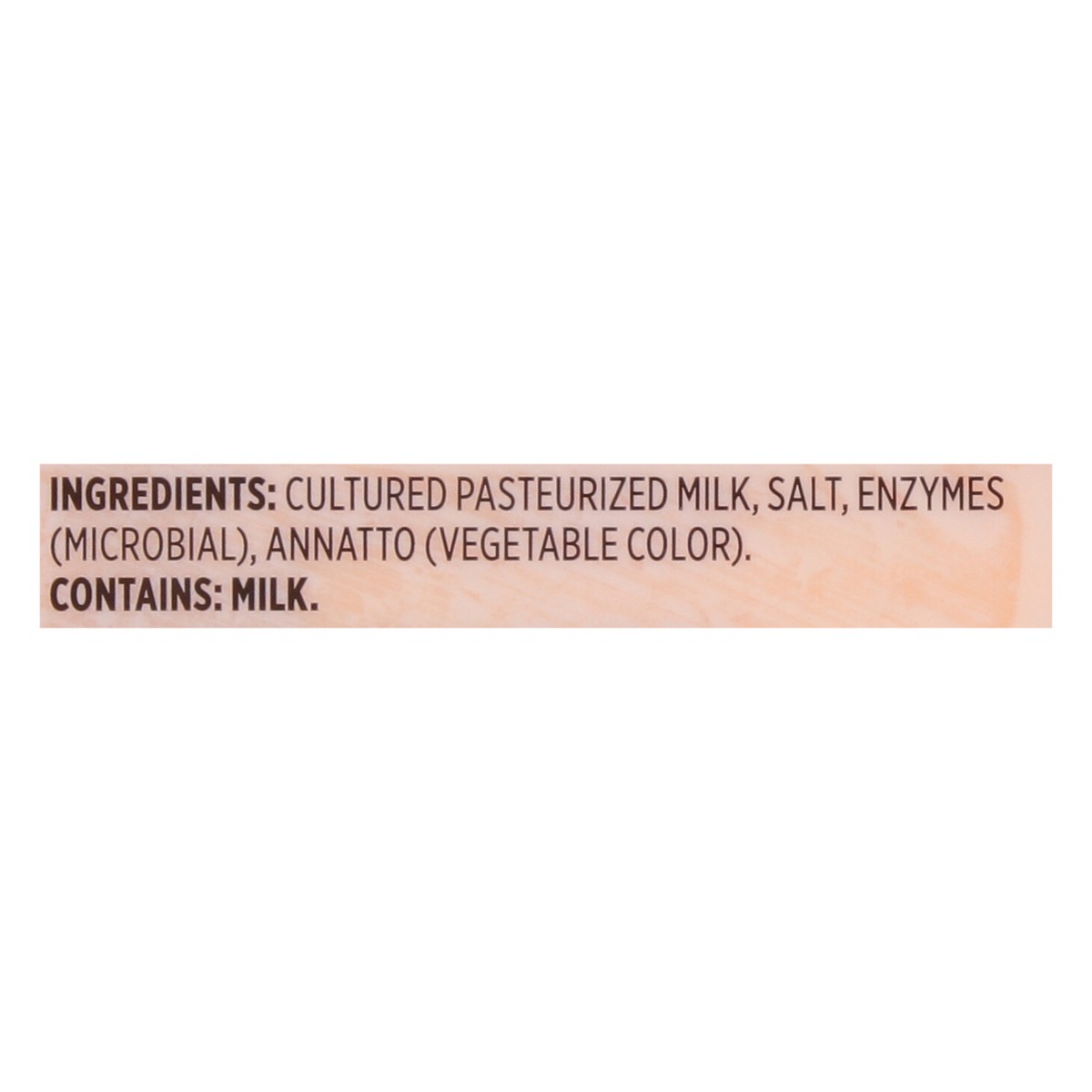 Cultured Pasteurized Milk, Salt, Enzymes (Microbial), Annatto (Vegetable Color).