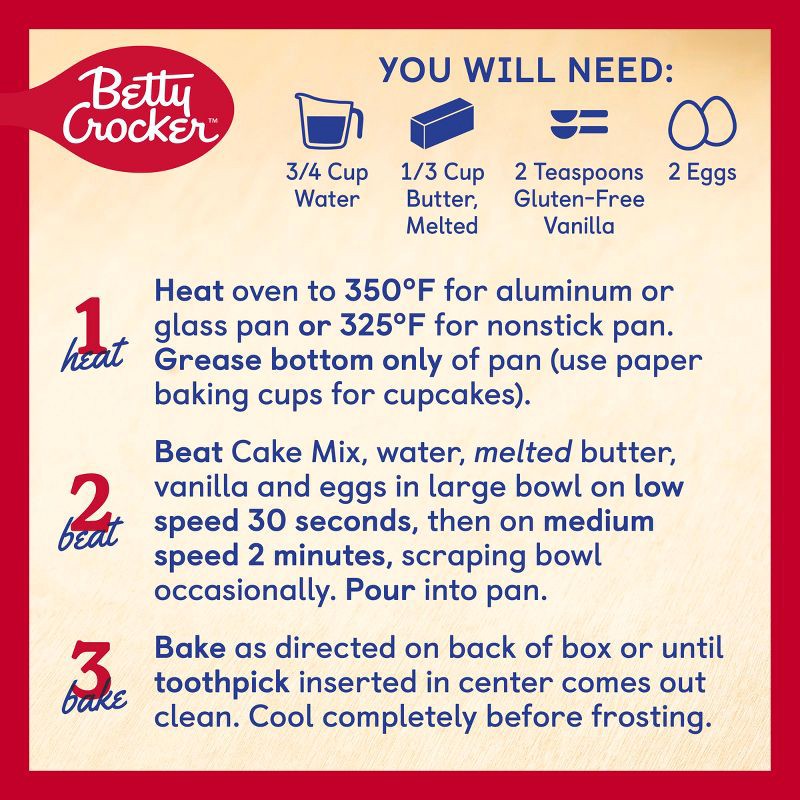Perfect for an anytime dessert, birthday celebration and more, Betty Crocker Gluten Free Yellow Cake Mix is the easy baking solution to all your sweet treat needs. This yellow cake mix is not only glu…