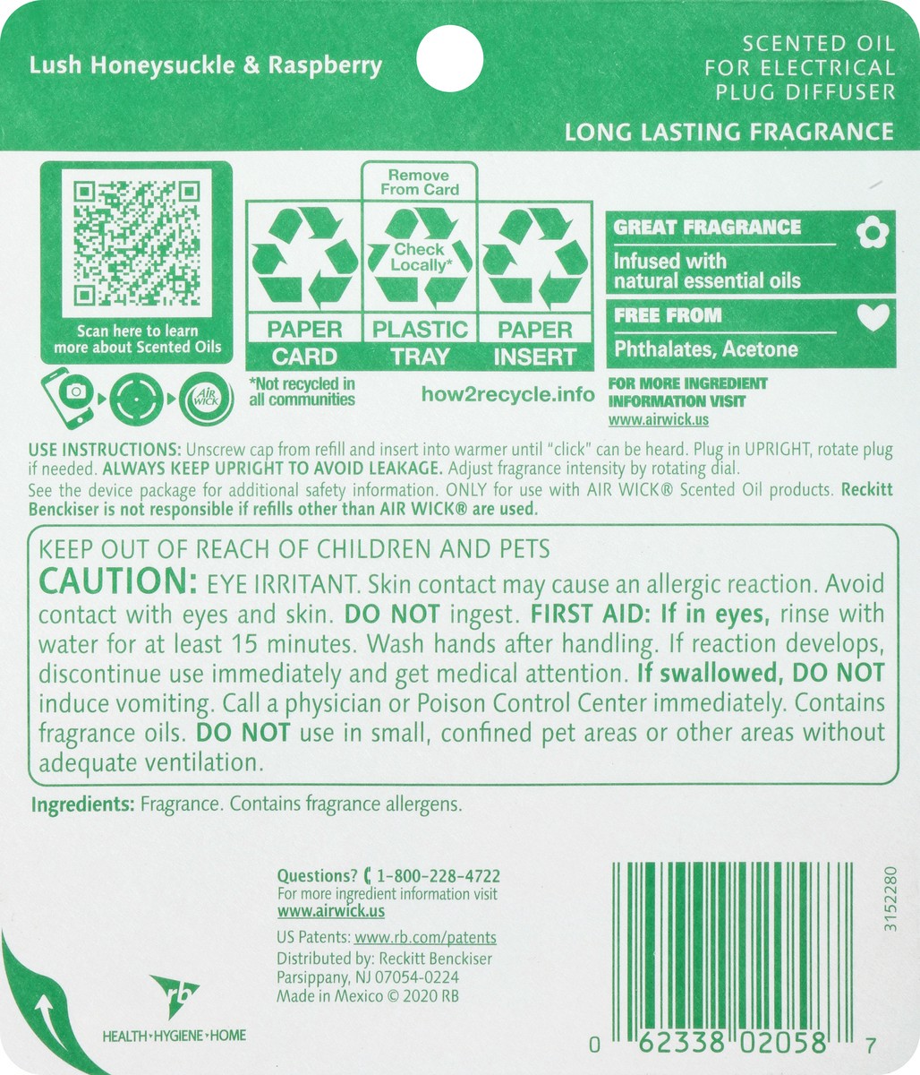 Air Wick Essential Oils Lush Honeysuckle & Raspberry Scented Oil 2 ea