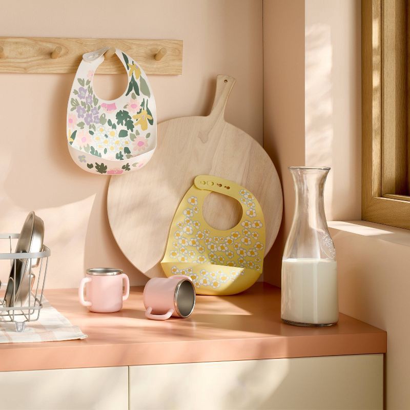 Allow your little one to sip drinks on their own with these 2-Pack Stainless Steel Open Cups from Cloud Island™. Made of metal for everyday use, these pink cups feature two side handles to encourage i…