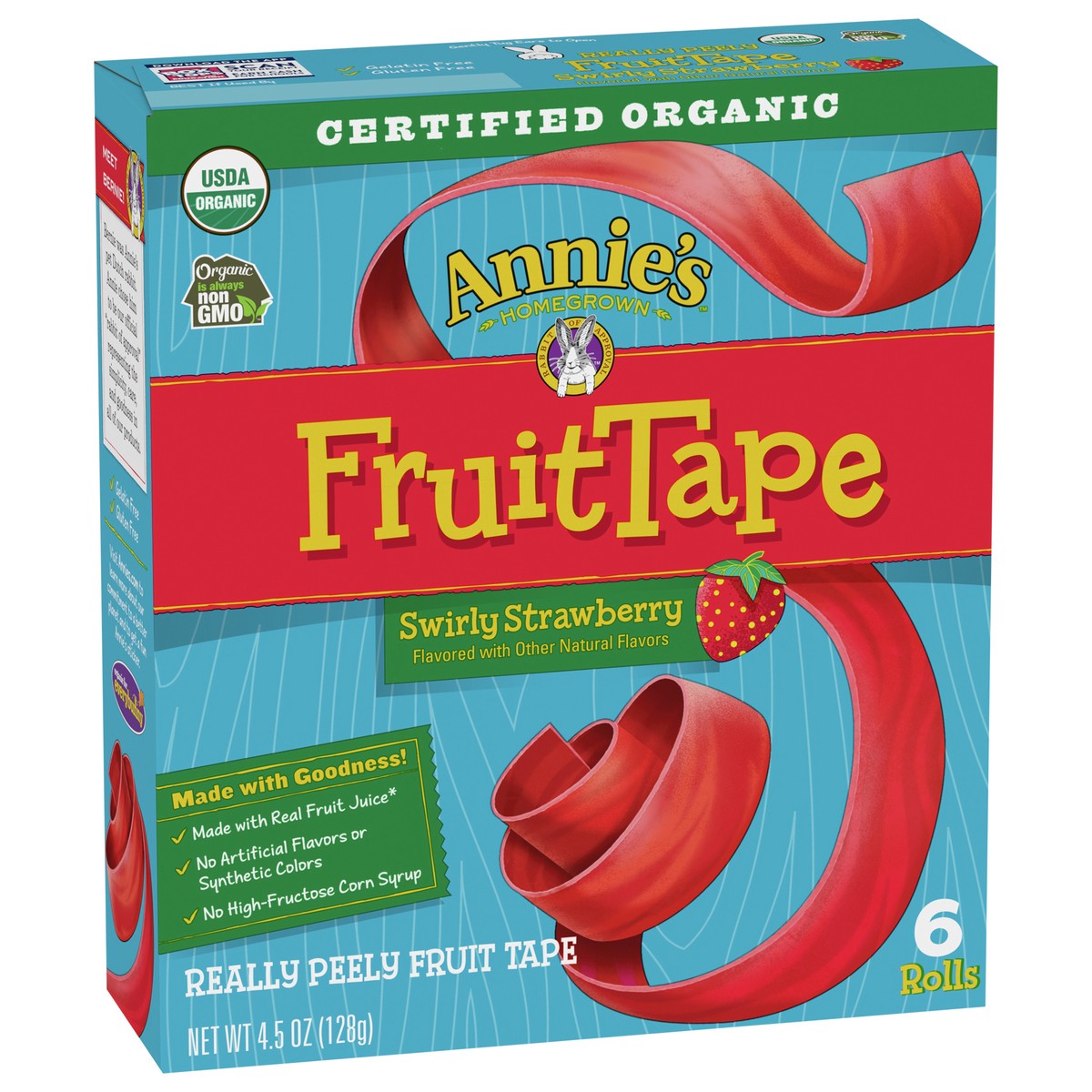 Annie''s Organic Fruit Tape, Swirly Strawberry, Non-GMO and Organic Fruit Flavored Snacks, 6 Rolls, 4.5 oz
