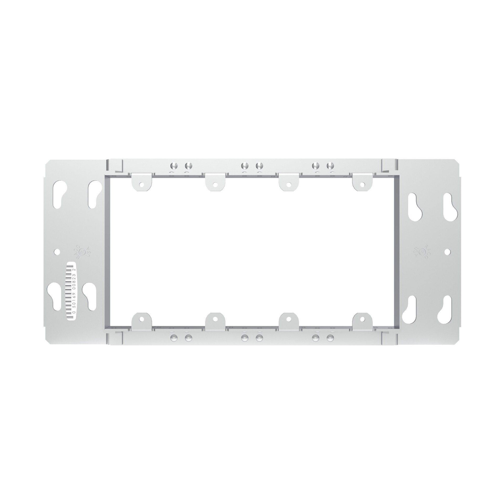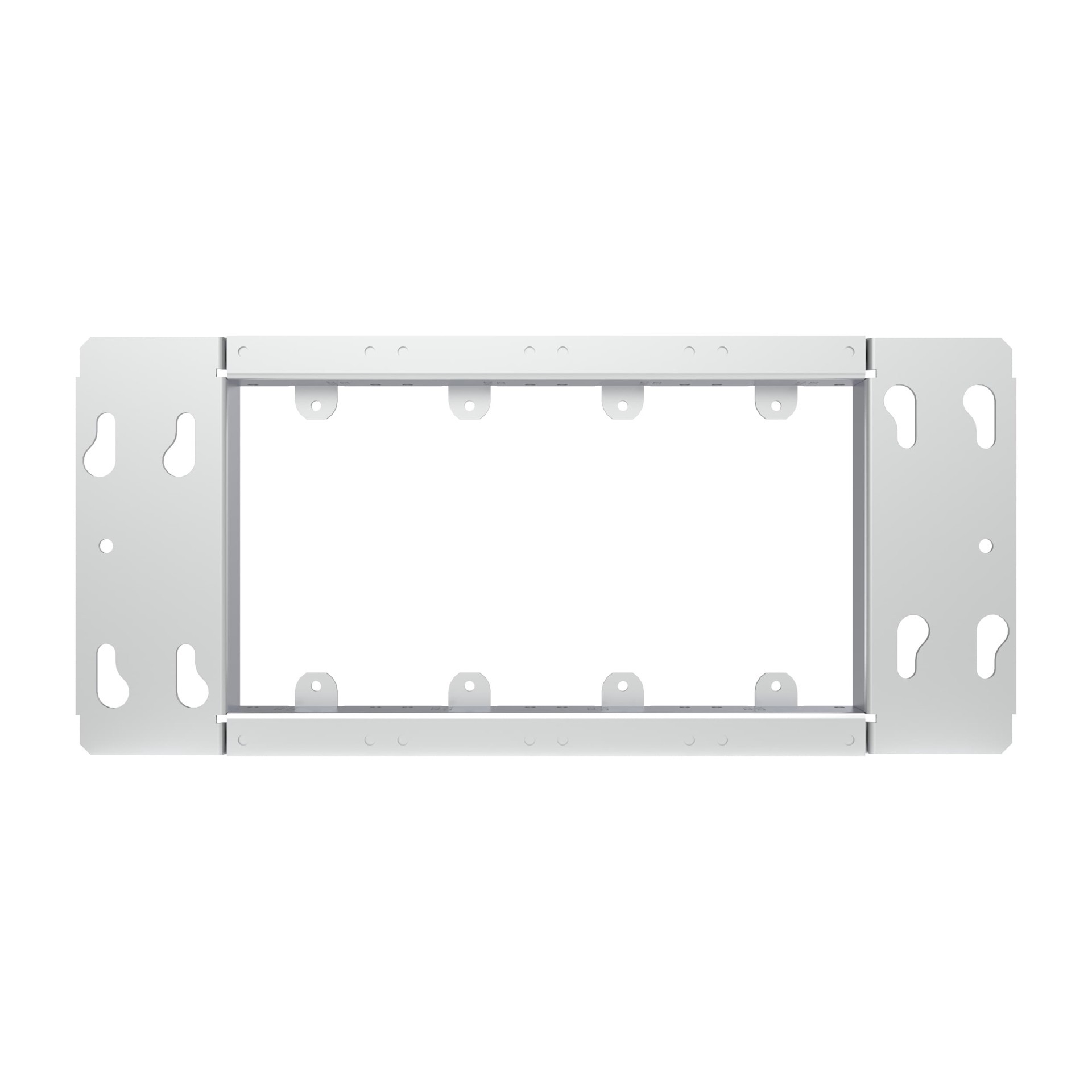 4-Gang device cover. Raised 3/4 in.. Fits the next smaller box. Low voltage partitions may be added. cULus Listed.