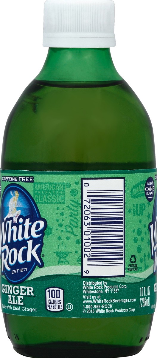 Made with cane sugar. Caffeine free. Made with real ginger. 100 calories per bottle. Please recycle. Visit us at www.WhiteRockBeverages.com.