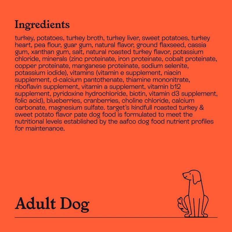 Treat your furry friend to this delicious Roasted Turkey & Sweet Potato Flavor Paté Wet Dog Food from Kindfull™. This 3.5oz pack is perfect for adult dogs. Made with real turkey as the first ingredien…