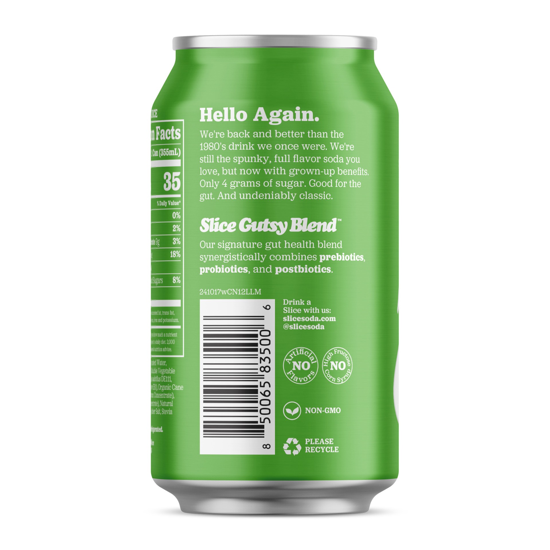Slice is the spunky, full-flavored lemon lime soda you loved as a kid, but now with grown-up benefits. Made with the Slice Gutsy Blend, this healthy soda contains probiotics, postbiotics and 5 grams o…