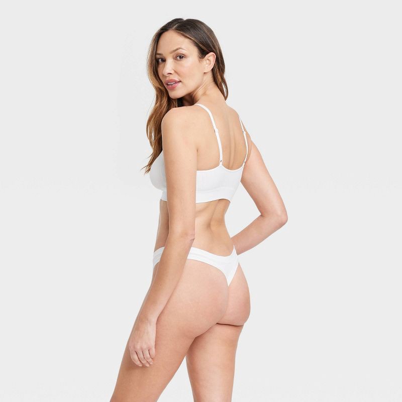 Women's Cotton Stretch Comfort Thong Underwear - Auden™ White M: Low Rise, Midweight, Jersey Fabric