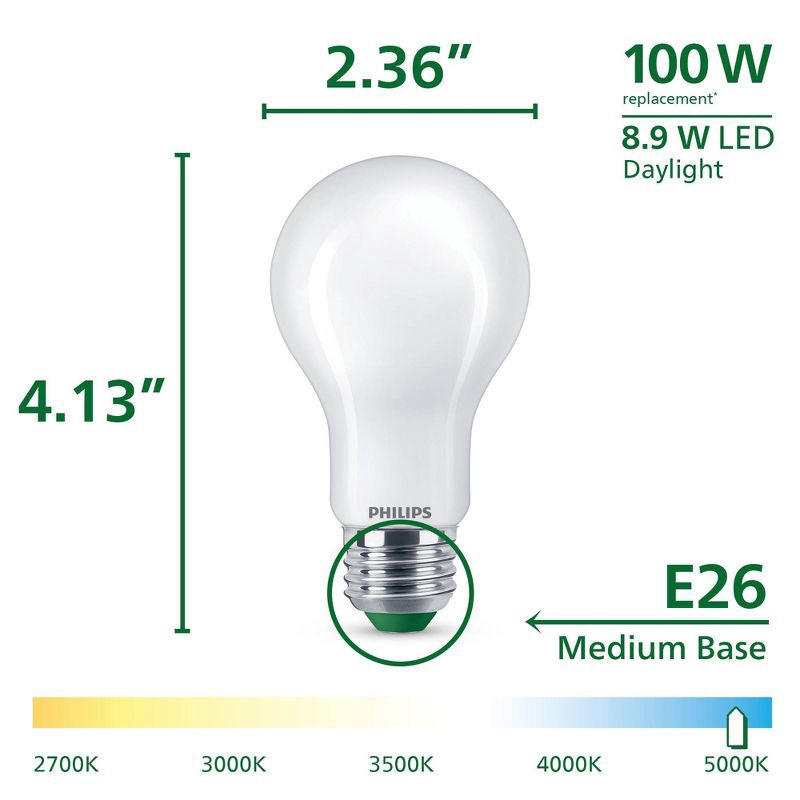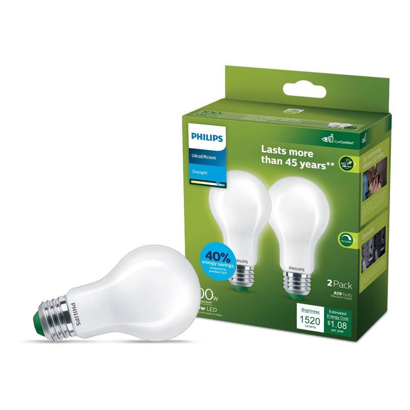 Philips 2pk 100W A19 Ultra Efficient Daylight Frosted