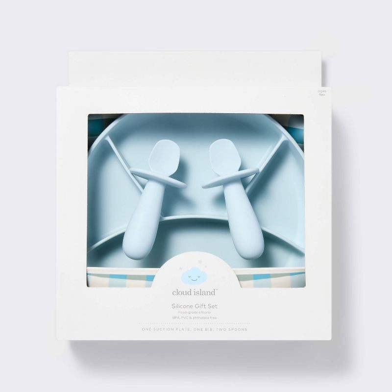 Mealtime Giftset - 4pc - Blue - Cloud Island™: Silicone, Solid Pattern, BPA-Free