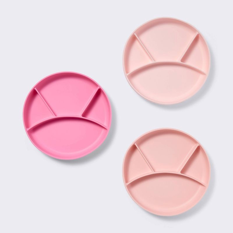 Silicone Suction Divided Plates - 3pk - Pink - Cloud Island™: BPA-Free, Round Shape, Service For 3