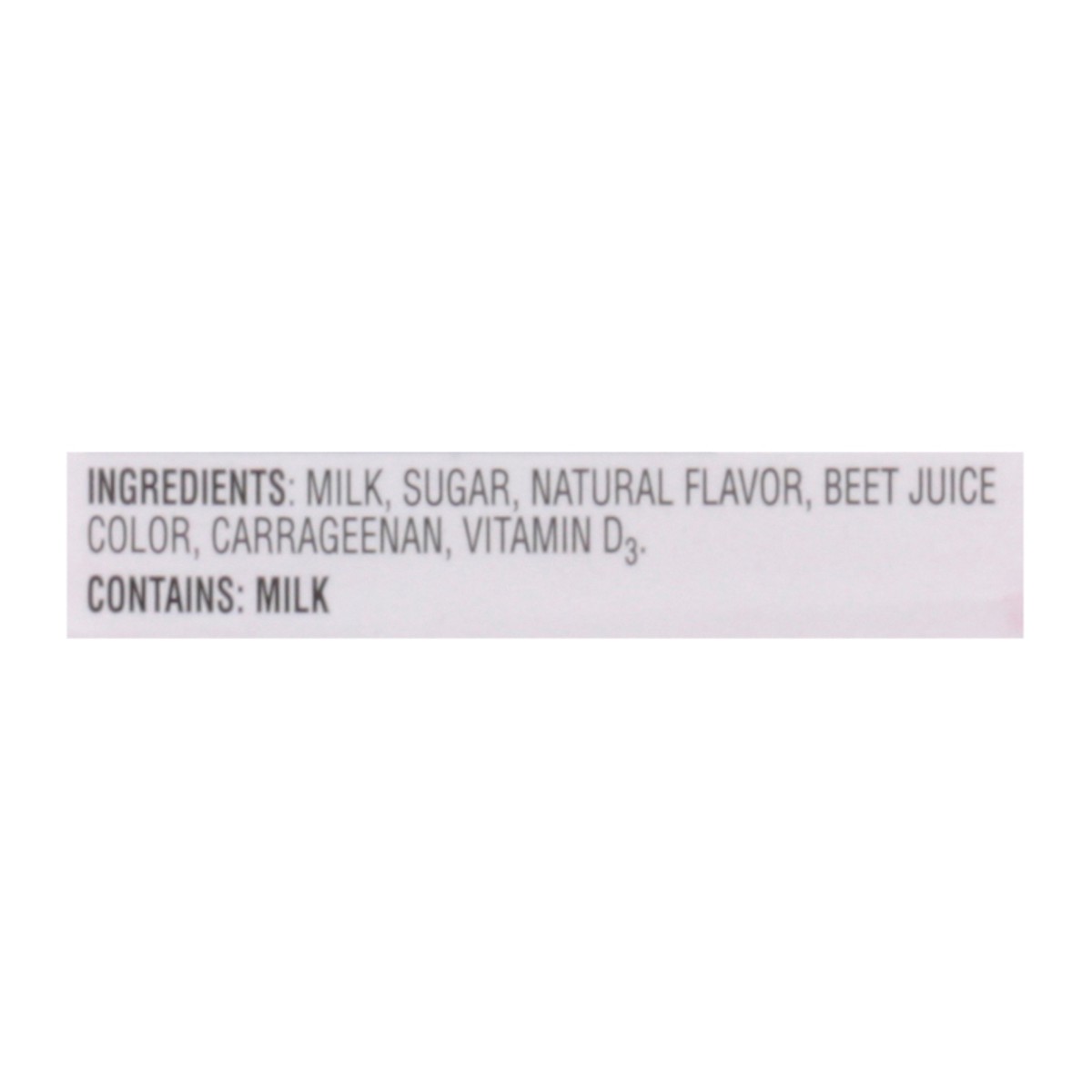 Milk, Sugar, Natural Flavor, Beet Juice Color, Carrageenan, Vitamin D3.