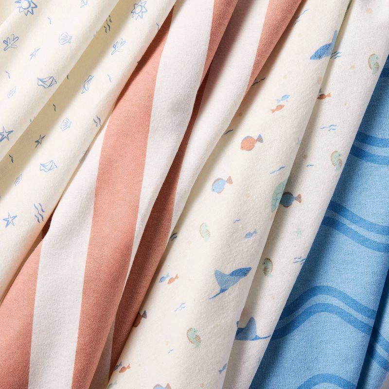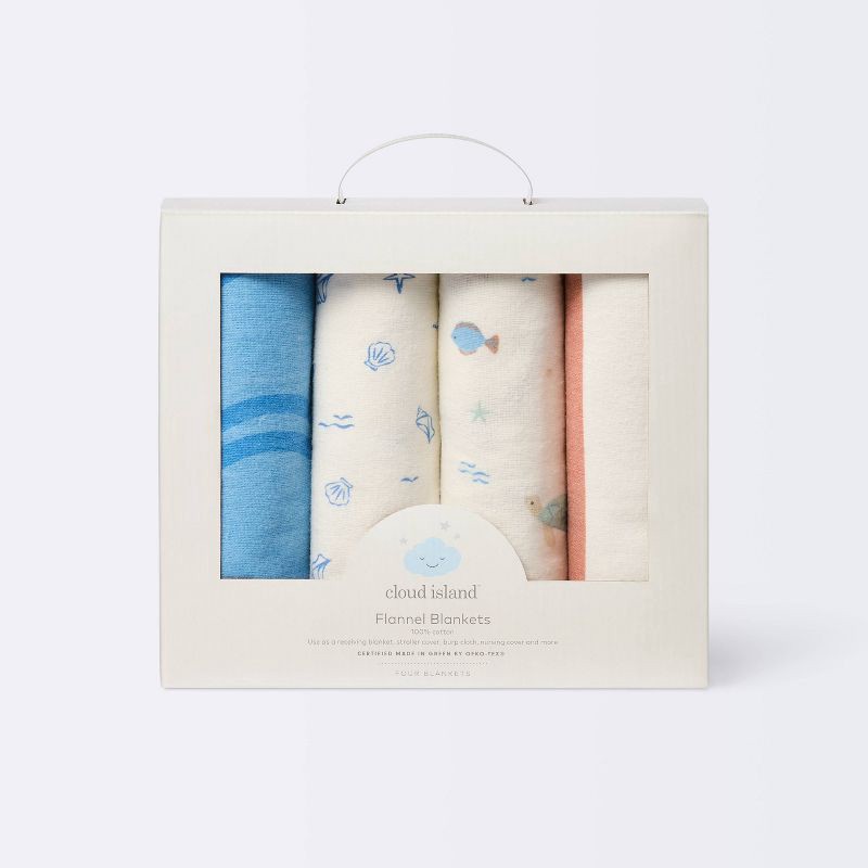 Flannel Baby Blankets - Sea Life - 4pk - Cloud Island™: Cotton, 30" x 30", Animal Print