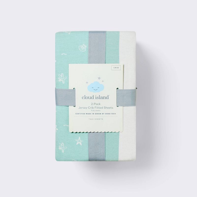 This 2-Pack Sea Life Fitted Cotton Jersey Crib Sheets from Cloud Island™ fits standard cribs and toddler beds. Made from soft cotton-spandex blend fabric for a flexible fit, these standard crib sheets…