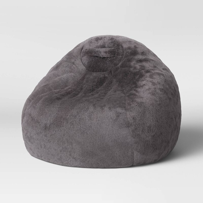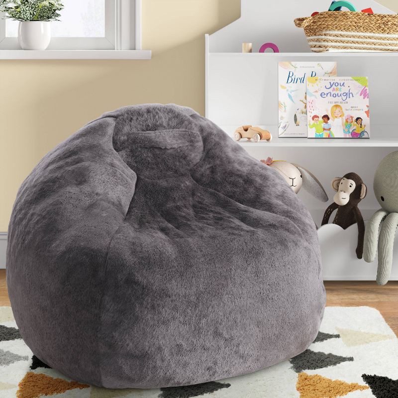 Fuzzy Fur Kids' Bean Bag Gray - Pillowfort™: Solid Indoor Beanbag Chair, Machine Washable Cover, Ages 3-12
