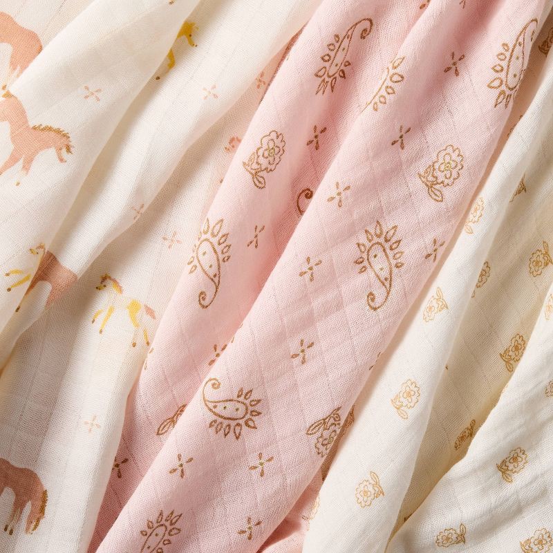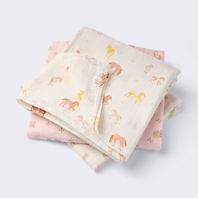 Muslin Swaddle Baby Blankets - Horses - 3pk - Cloud Island™