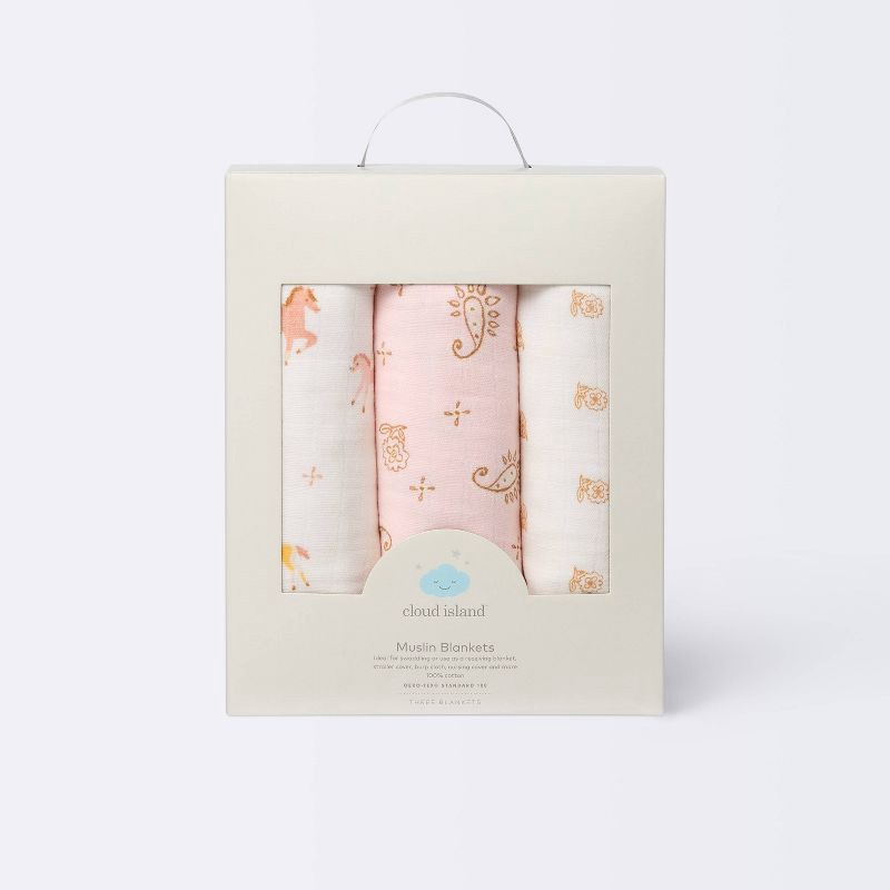 Cover your precious baby from head to toe for complete warmth with these 3-Pack Horses Muslin Swaddle Baby Blankets from Cloud Island™. The pack features three 47-inch baby blankets — one adorned with…