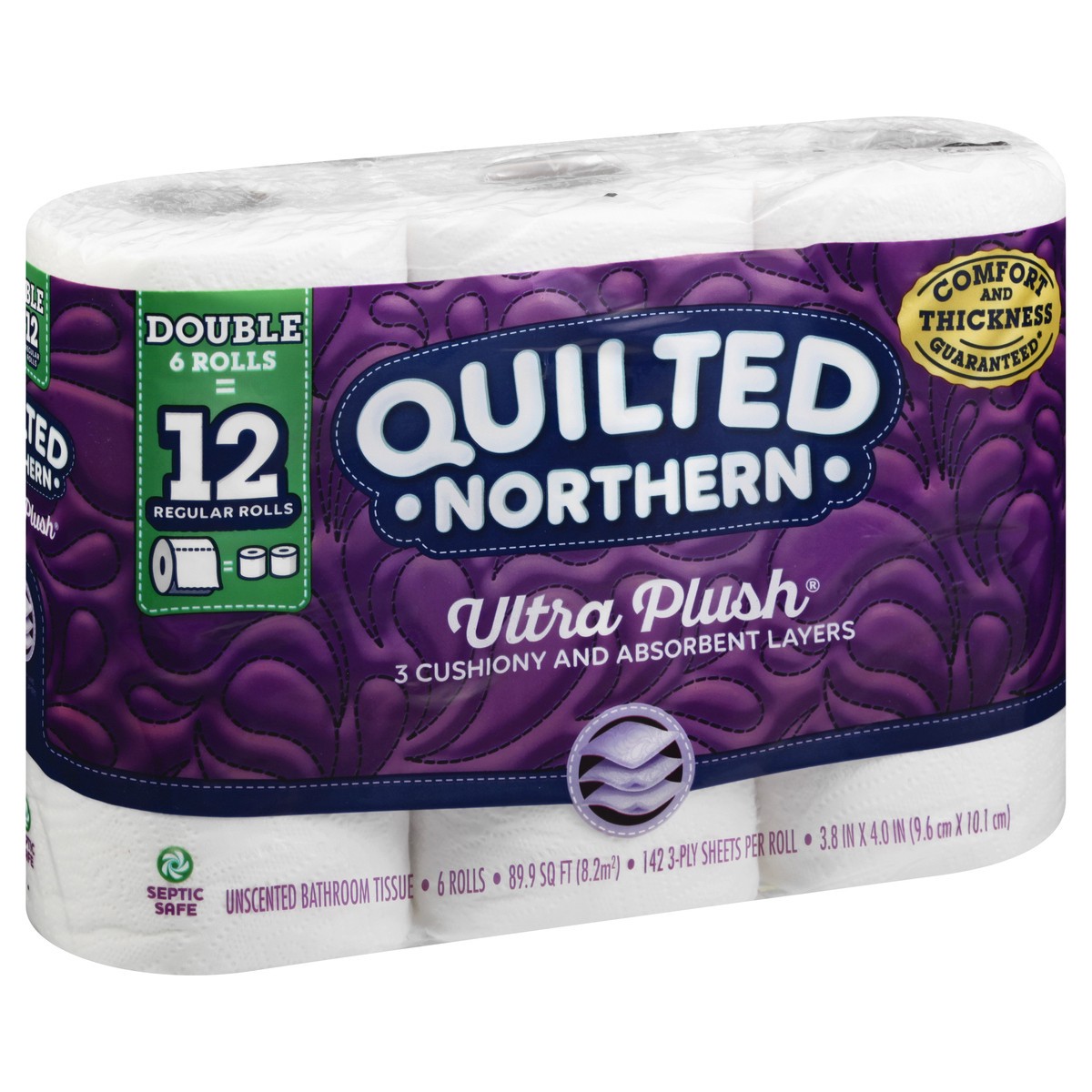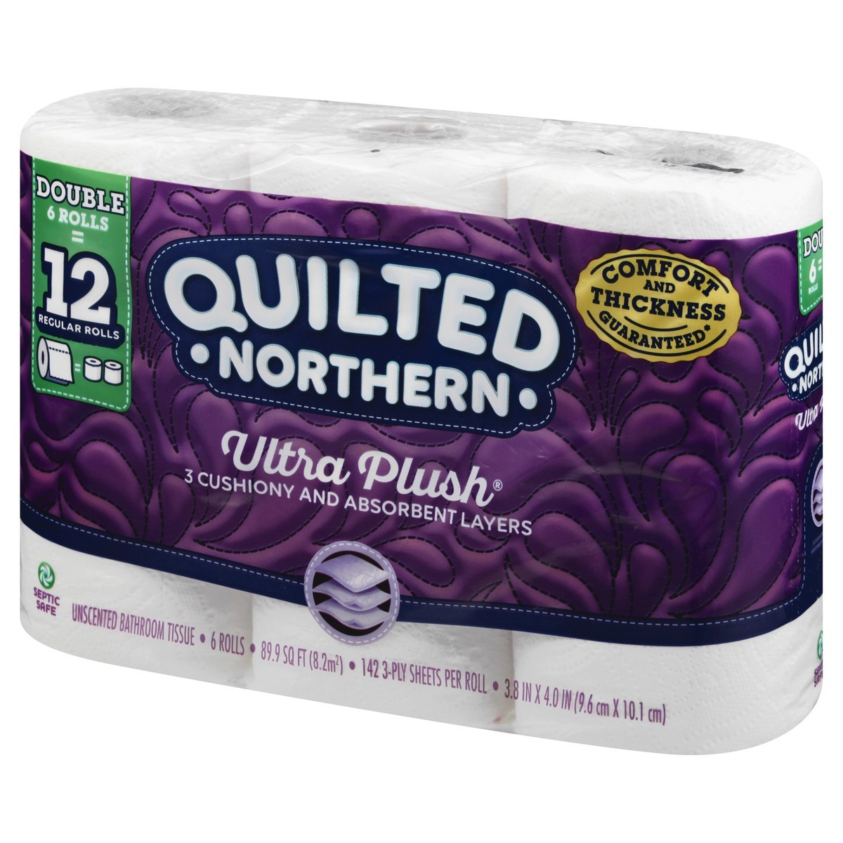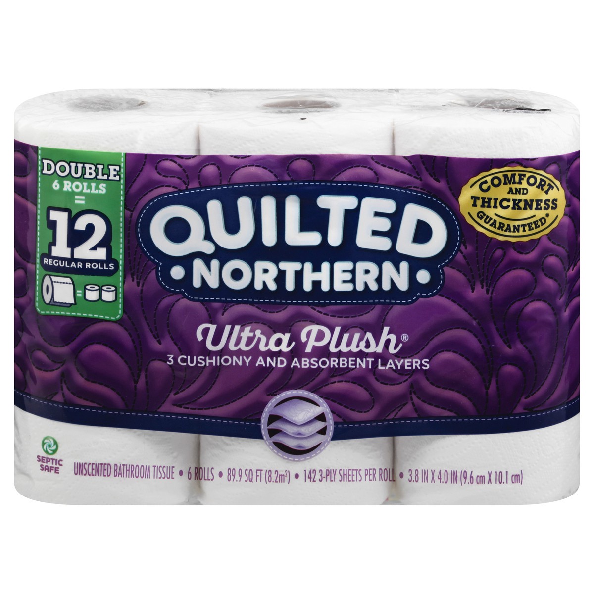 3.8 in x 4.0 in (9.6 cm X 10.1 cm) Double 6 rolls = 12 regular rolls. 3 cushiony and absorbent layers. 89.9 sq ft (8.2 sq m). 142 3-ply sheets per roll. Persnickety about the good life. Confession: We…