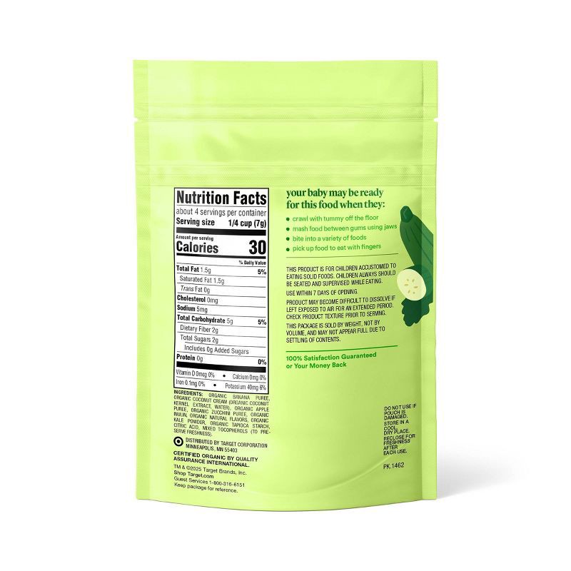 ORGANIC BANANA PUREE, ORGANIC COCONUT CREAM (ORGANIC COCONUT KERNEL EXTRACT, WATER), ORGANIC APPLE PUREE, ORGANIC ZUCCHINI PUREE, ORGANIC INULIN, ORGANIC NATURAL FLAVORS, ORGANIC KALE POWDER, ORGANIC …