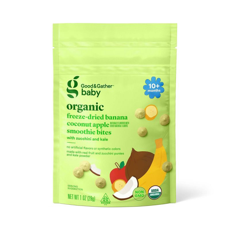 Delight your little one with these Freeze-Dried Organic Fruit & Veggie Bites from Good & Gather™. These organic freeze-dried bites are made from real fruits — banana, coconut and apple — with a blend …