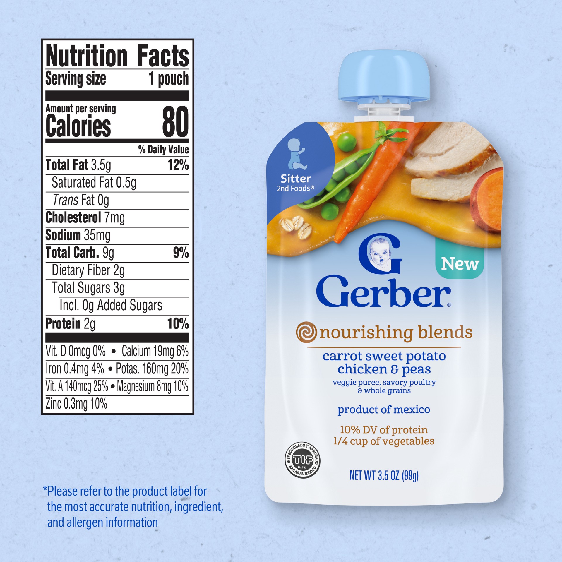 Gerber Nourishing Blends Carrot Sweet Potato Chicken And Peas Veggie Puree Savory Poultry And Whole - 3.5 Oz