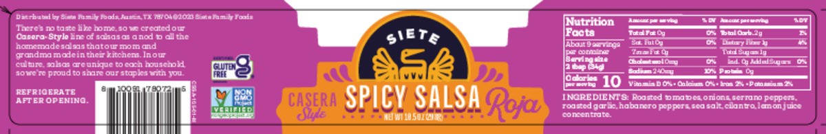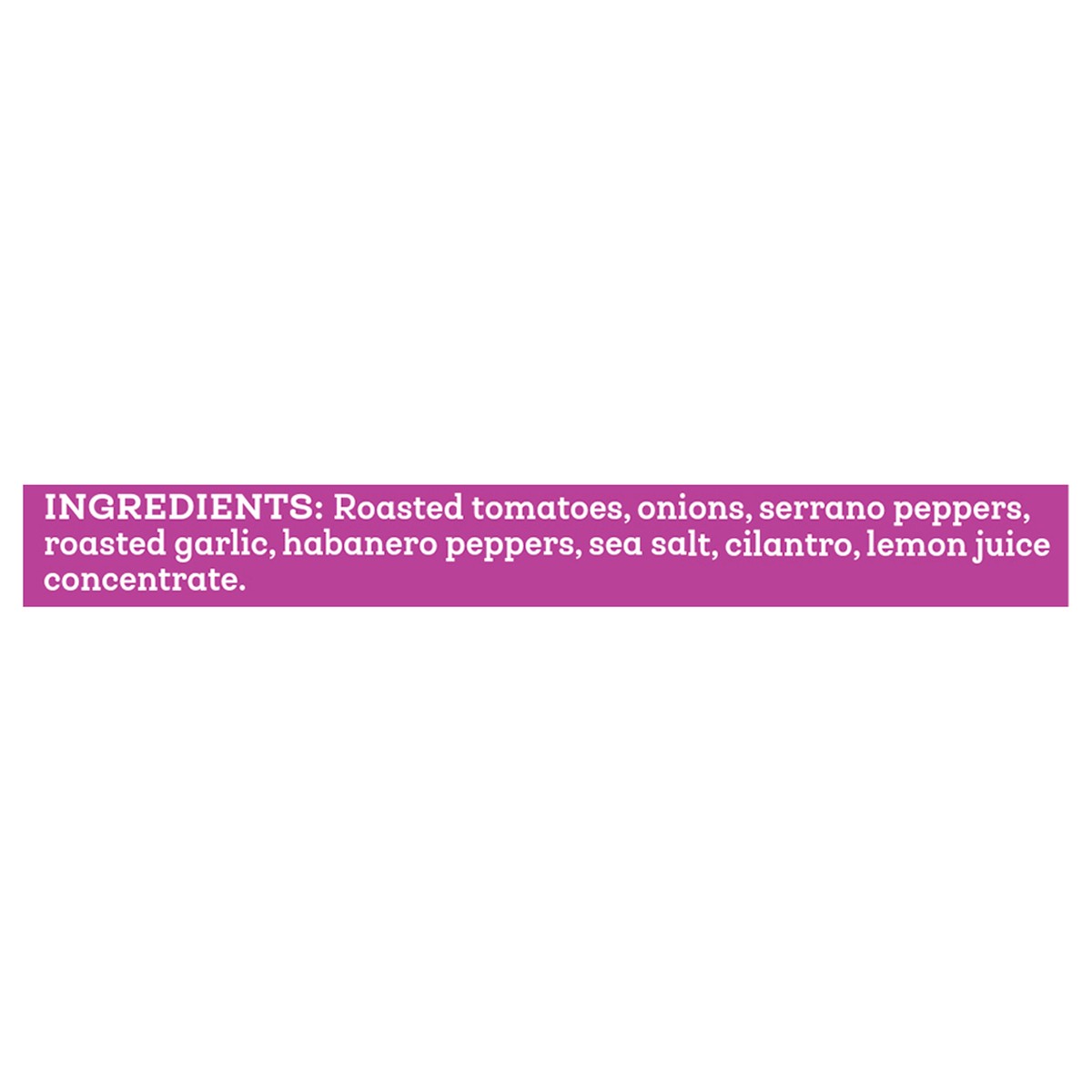 Roasted Tomatoes, Onions, Serrano Peppers, Roasted Garlic, Habanero Peppers, Sea Salt, Cilantro, Lemon Juice Concentrate.