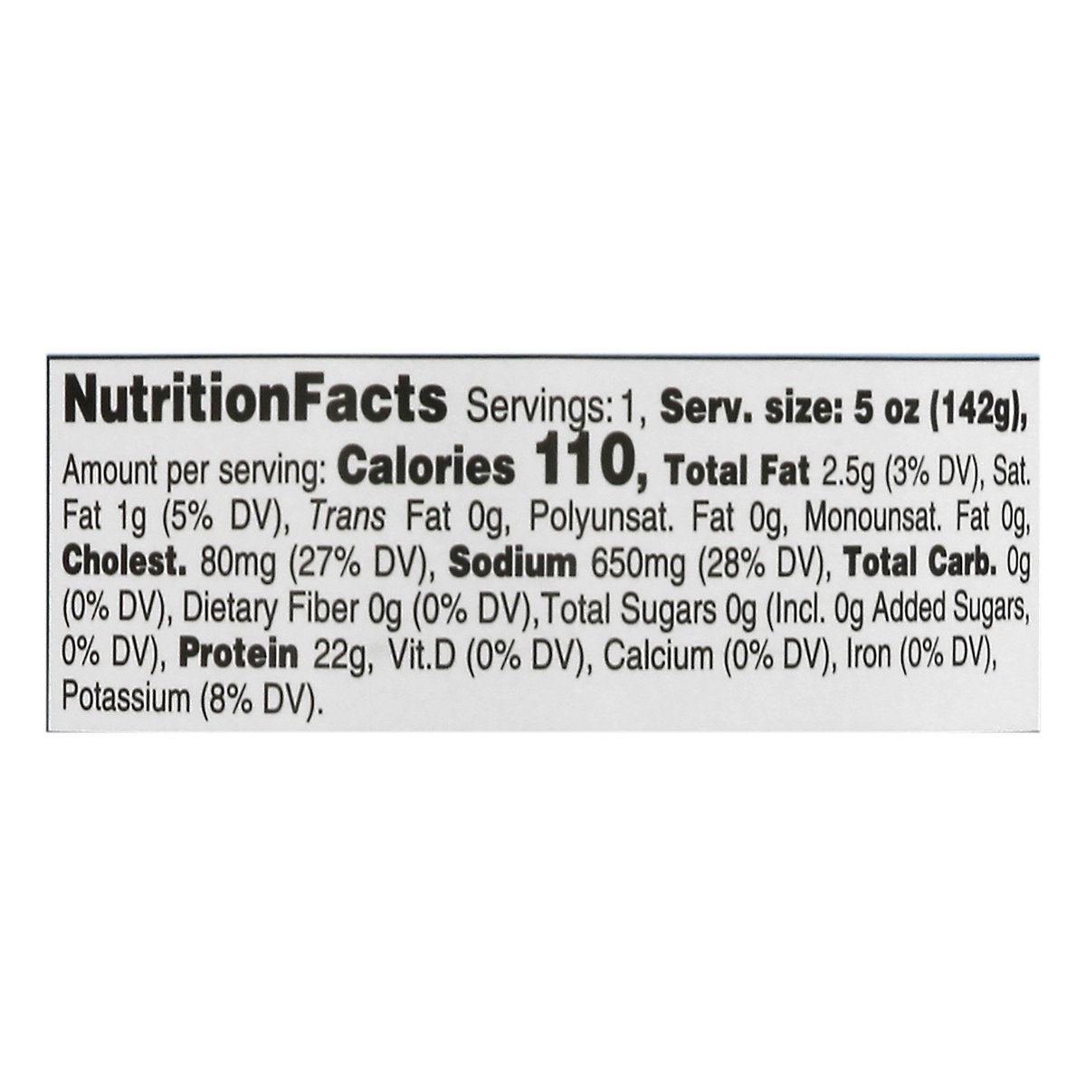 110 calories per 5 oz. 98% fat free. With rib meat in water. 100% satisfaction guaranteed. Our Quality Commitment: If not 100% satisfied, return unused product to your store for a prompt and cheerful …