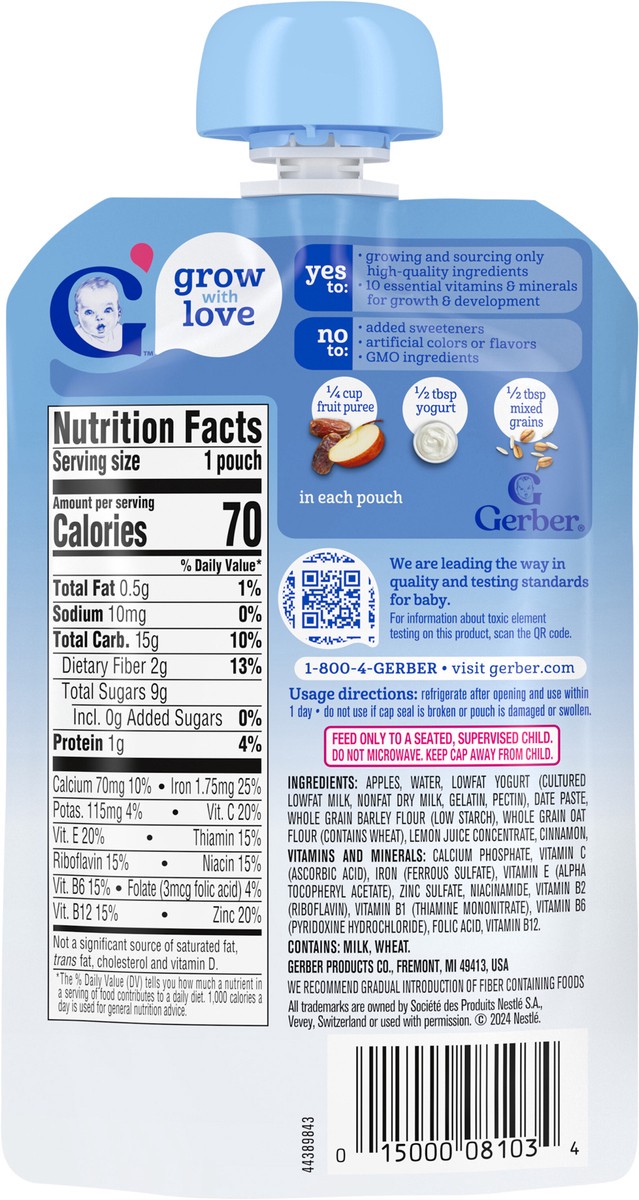 GERBER Infant Puree Toddler Fruit Yogurt Grain Apple Cinnamon 3.5oz Pouch