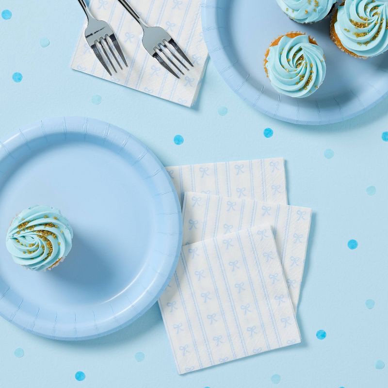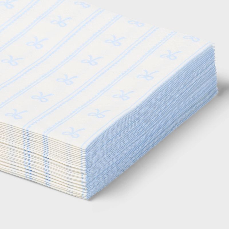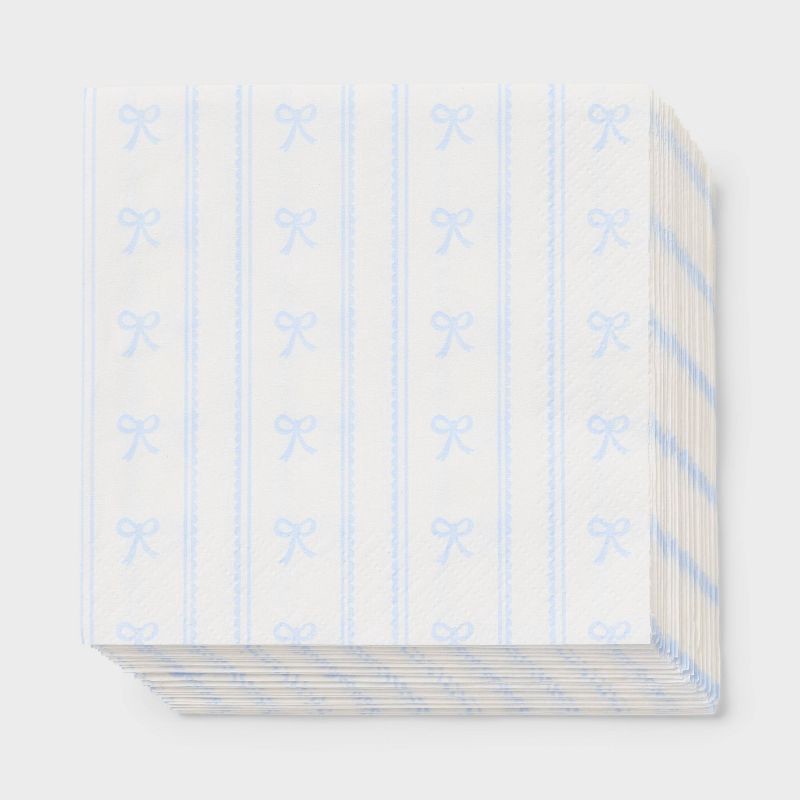 30ct Dainty Bow Beverage Napkins Blue - Spritz™