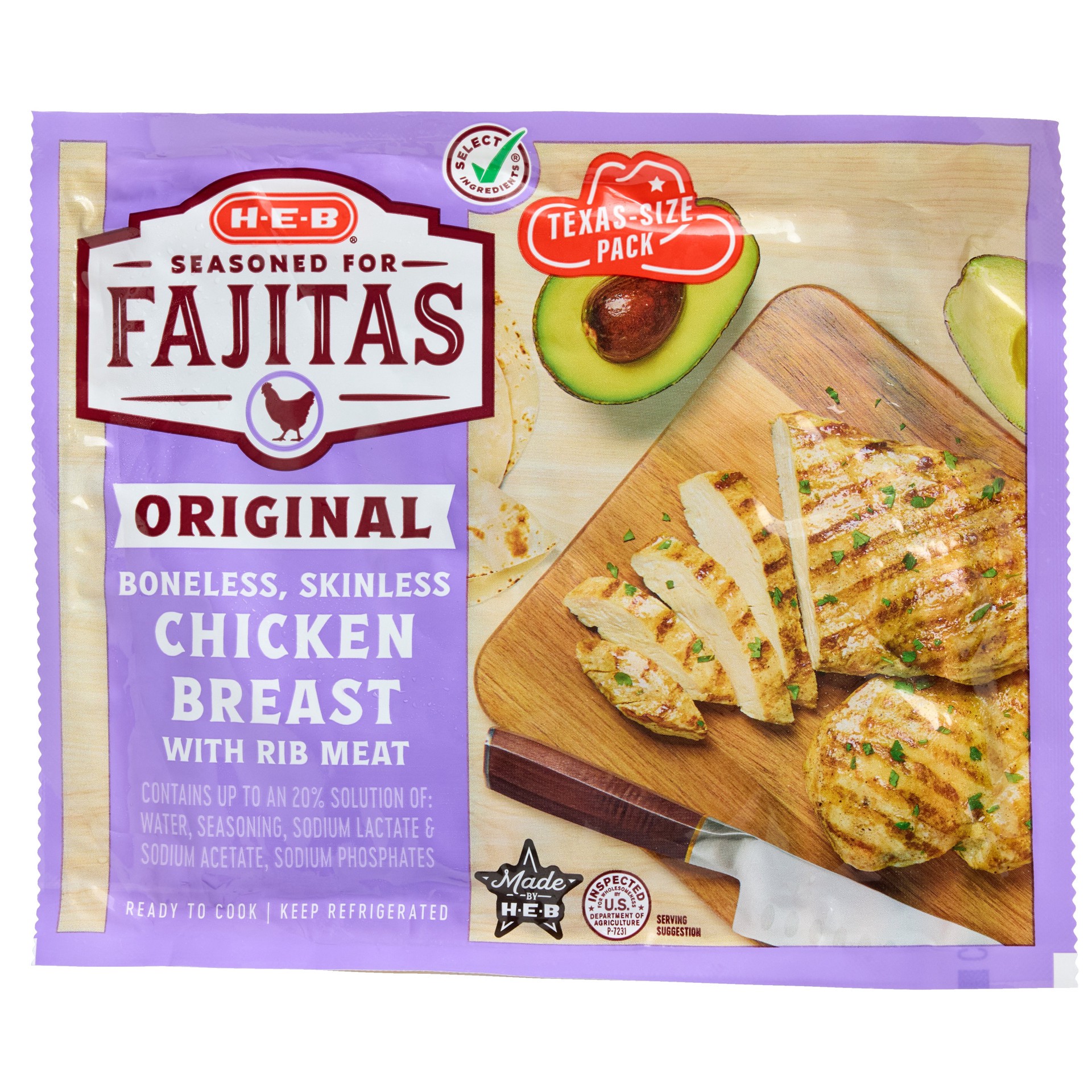 Robustly seasoned with garlic and bell pepper powder, our H-E-B chicken breasts are an easy dinner option on Taco Tuesday or any day. Just fire up the grill and get set to savor the Tex-Mex flavor you…