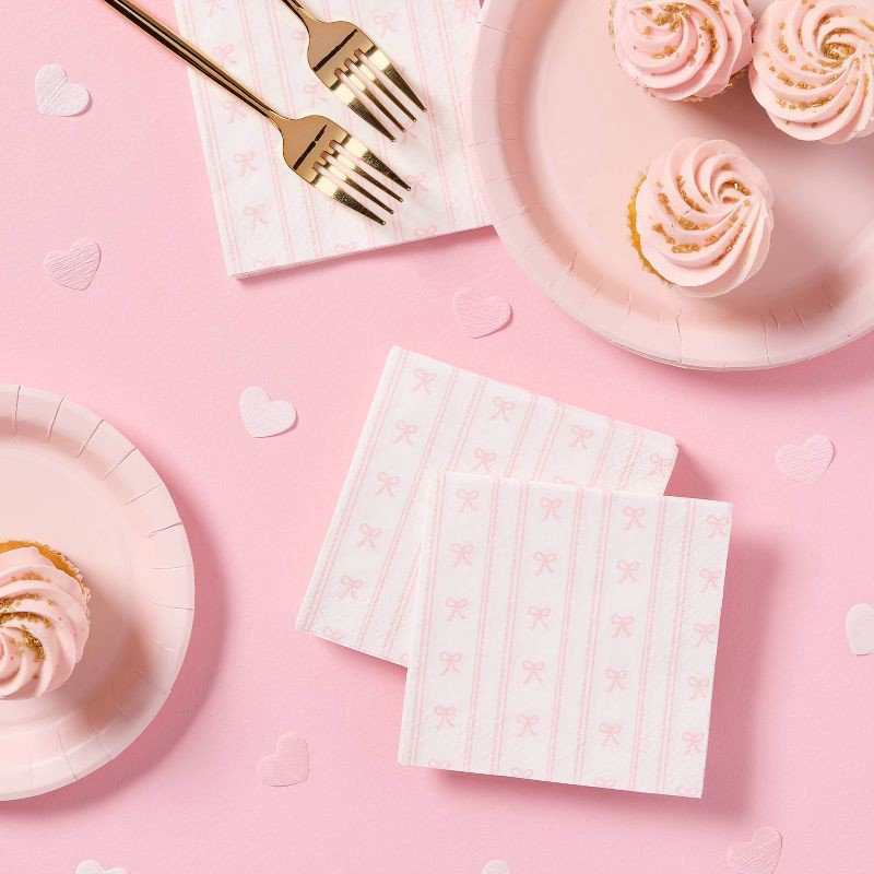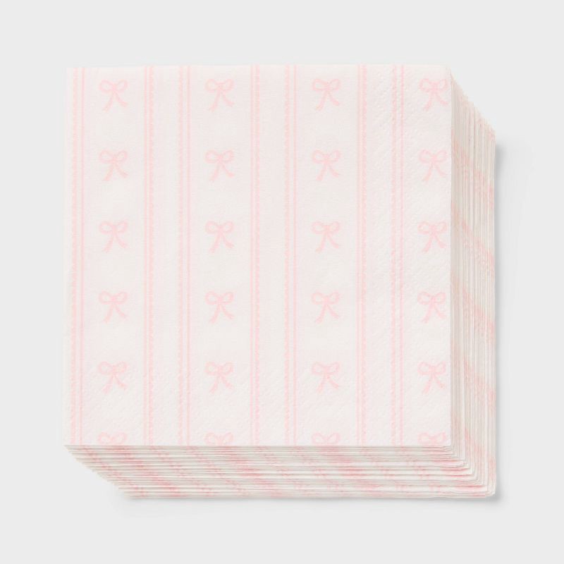 30ct Dainty Bow Beverage Napkins Pink - Spritz™