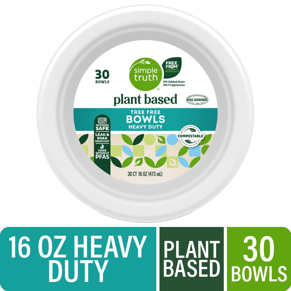 Simple Truth Plant Based Tree Free Heavy Duty Compostable Bowls, 30 ct / 16 oz
