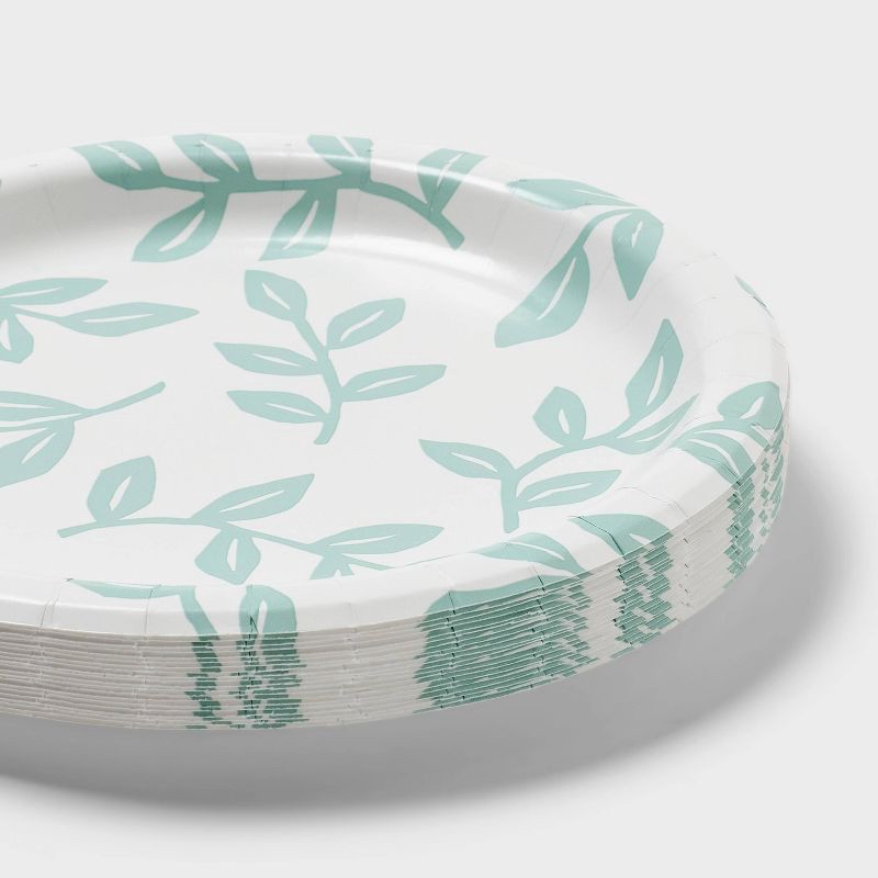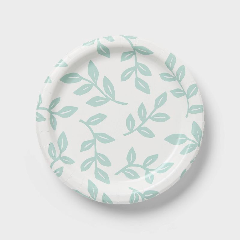 20ct Sage Botanical Leaves Snack Paper Plates - Spritz™