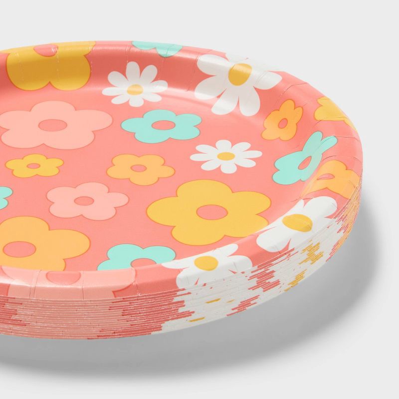20ct Pink/Orange Retro Flower Snack Paper Plates - Spritz™