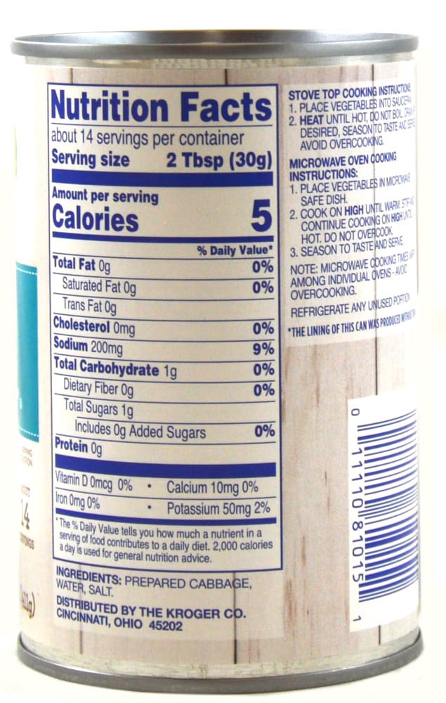 Ingredients: Prepared Cabbage, Water, Salt.