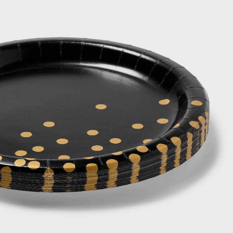 20ct Black/Gold Confetti Dinner Paper Plates - Spritz™"