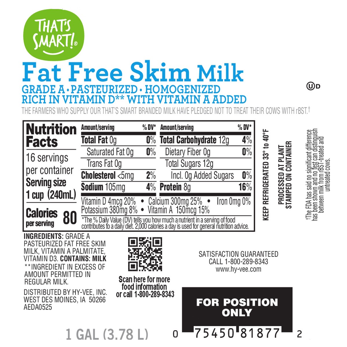 Grade A Pasteurized Fat Free Skin Milk, Vitamin A Palmitate, Vitamin D3.